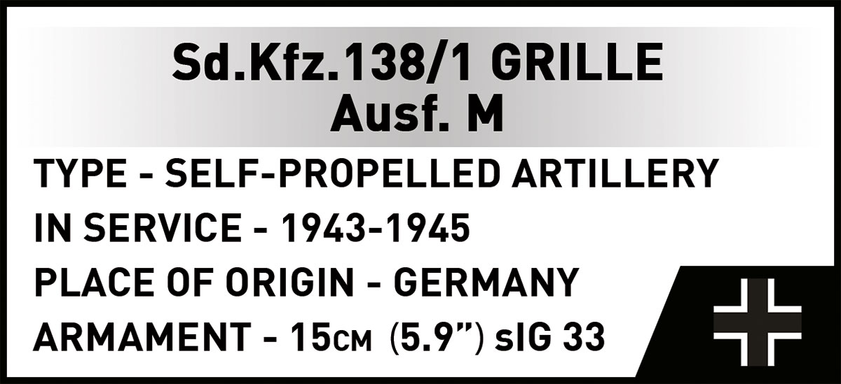 Działo samobieżne Grille Ausf. M (niem. „świerszcz”) było jedną z najbardziej charakterystycznych konstrukcji niemieckich okresu II wojny światowej. Oparte na sprawdzonym podwoziu czeskiego czołgu Panzer 38(t), zostało gruntownie przeprojektowane. Silnik przeniesiono do centralnej części kadłuba, a uzbrojenie główne, potężną haubicę sIG 33 kal. 150 mm, umieszczono w tylnej, opancerzonej nadbudówce. Dzięki tym zmianom Grille Ausf. M zyskało lepszą stabilność, możliwość prowadzenia ognia pod większym kątem i skuteczniej wspierało niemiecką piechotę na froncie. Łącznie powstało około 280 egzemplarzy bojowych tej maszyny, która służyła zarówno na Wschodzie, jak i Zachodzie, w ramach dywizji pancernych i grenadierów pancernych.