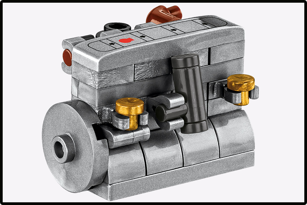 Ruchome elementy – Model ma otwierany tylni właz oraz ruchome działo z możliwością podnoszenia i opuszczania, co jest bardzo pomocną opcją przy odtwarzaniu scen bitewnych. Przednia osłona jest zdejmowana, dzięki czemu można wyjąc silnik maszyny i wyeksponować go obok modelu. Wysoka jakość i trwałość – Wszystkie nadruki są trwałe i nieścieralne. Nie ma w zestawie żadnych naklejek! Klocki wykonano z solidnego tworzywa, odpornego na ścieranie i intensywną zabawę.
