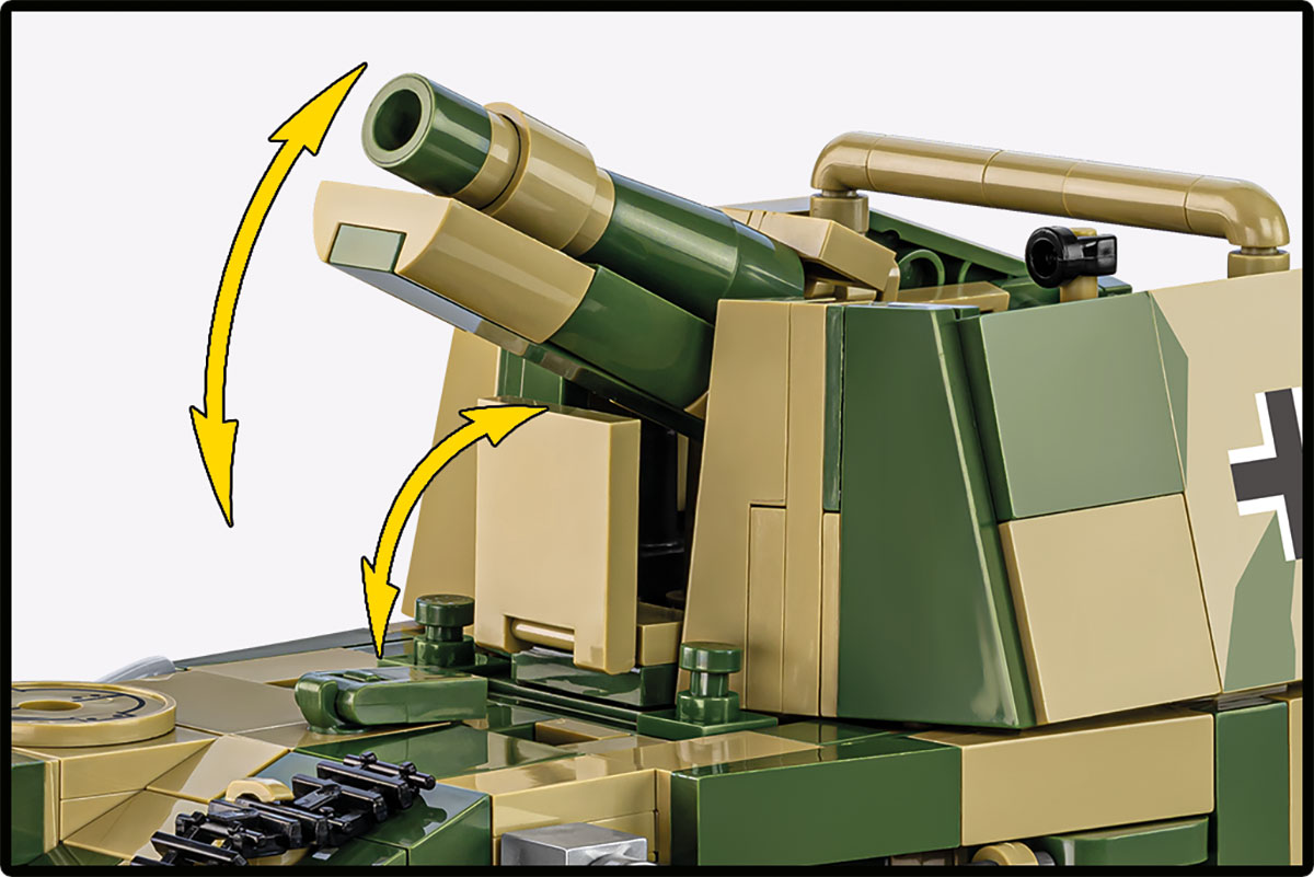 Tabliczka kolekcjonerska- Do zestawu dołączona jest biała klockowa tabliczka z nazwą zestawu i skalą. Taki element zawsze dodaje zestawowi uroku i atrakcyjnie prezentuje się w gablocie kolekcjonerskiej. Figurka żołnierza – W zestawie znajduje się dodana figurka niemieckiego oficera artylerii w historycznym umundurowaniu z dystynkcjami, gotowego do ataku lub obrony umocnień! Do figurki dodano lornetkę i cztery pociski artyleryjskie. Figurkę można wstawić do pojazdu jak i postawić obok jako cześć większej dioramy. Realistyczne gąsienice i koła – Obracające się koła i gąsienice zapewniają płynny ruch modelu. Układ jezdny odwzorowuje układ oryginalnego pojazdu, dzięki czemu model może służyć zarówno jako eksponat, jak i zabawka dla młodszych konstruktorów.