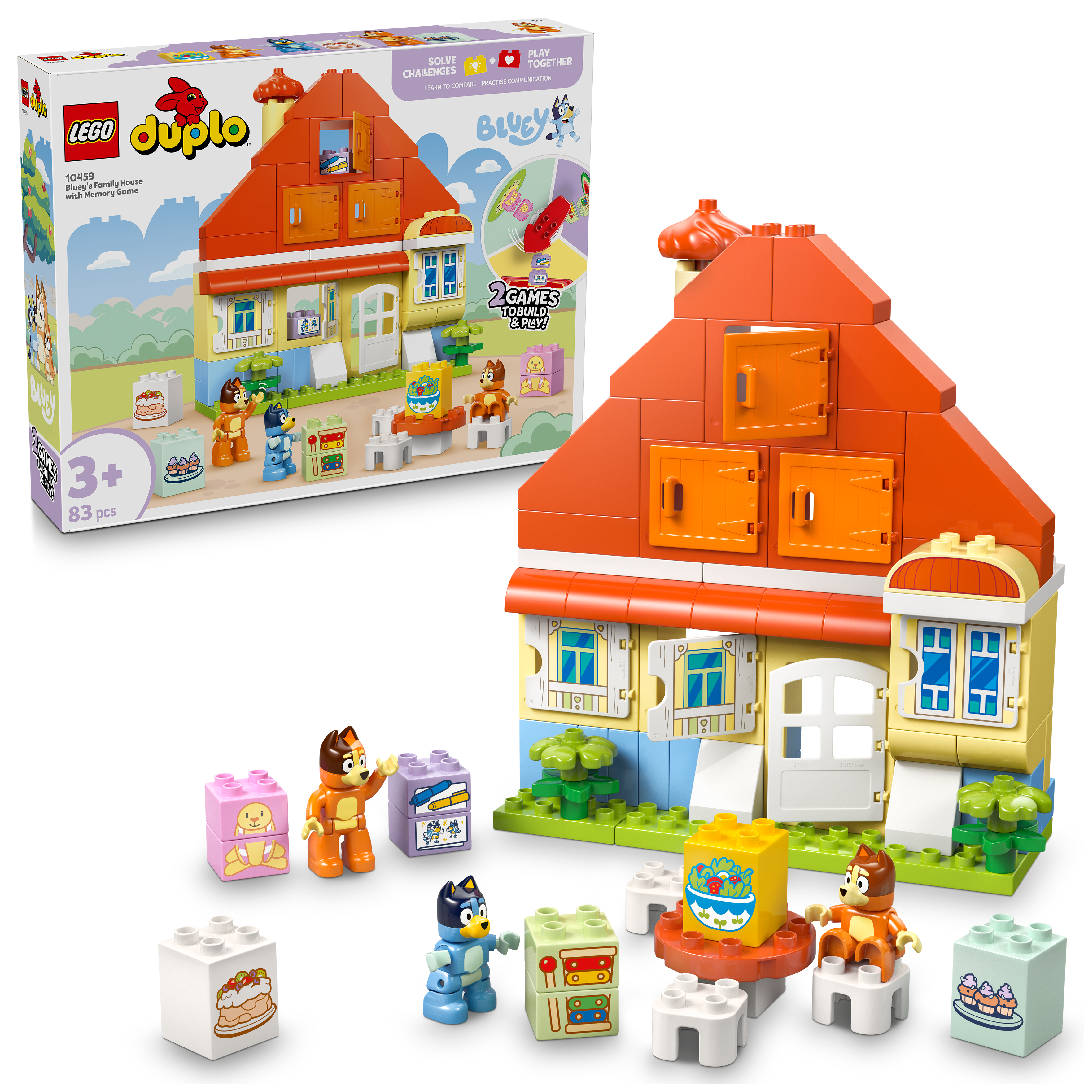 • Trzy znane postacie — ten zestaw zawiera figurki mamy, Bingo i Blue z serialu Blue, a także klocki przedstawiające znane elementy z domu Łączków, w tym króliczka Bingo — Klapcię