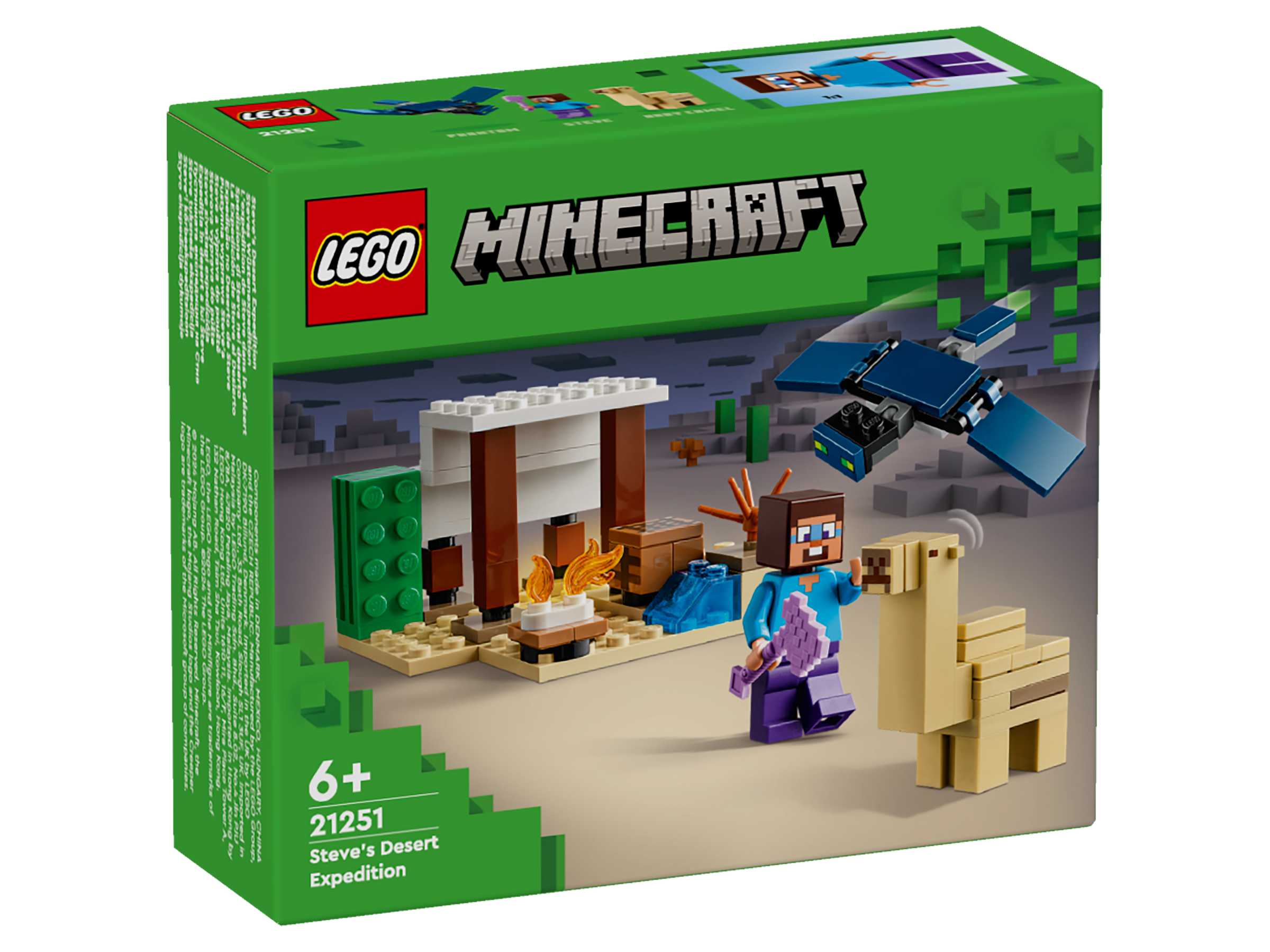 • Pustynny zestaw LEGO® Minecraft® — pierwszy zestaw LEGO Minecraft osadzony w pustynnym biomie rzuca wyzwanie chłopcom i dziewczętom w wieku od sześciu lat, aby zbudowali dom z gry, a następnie bronili go przed latającym fantomem