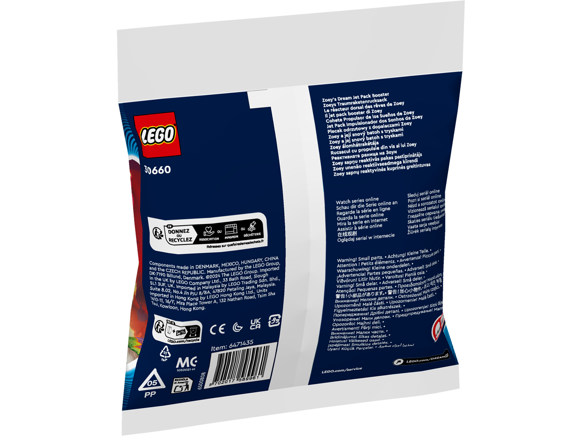 Niech Twoja wyobraźnia poszybuje w przestworza dzięki zestawowi Plecak odrzutowy z dopalaczami Zoey (30660), który obejmuje minifigurkę Zoey z plecakiem odrzutowym oraz fajnego stwora z koszmarów.