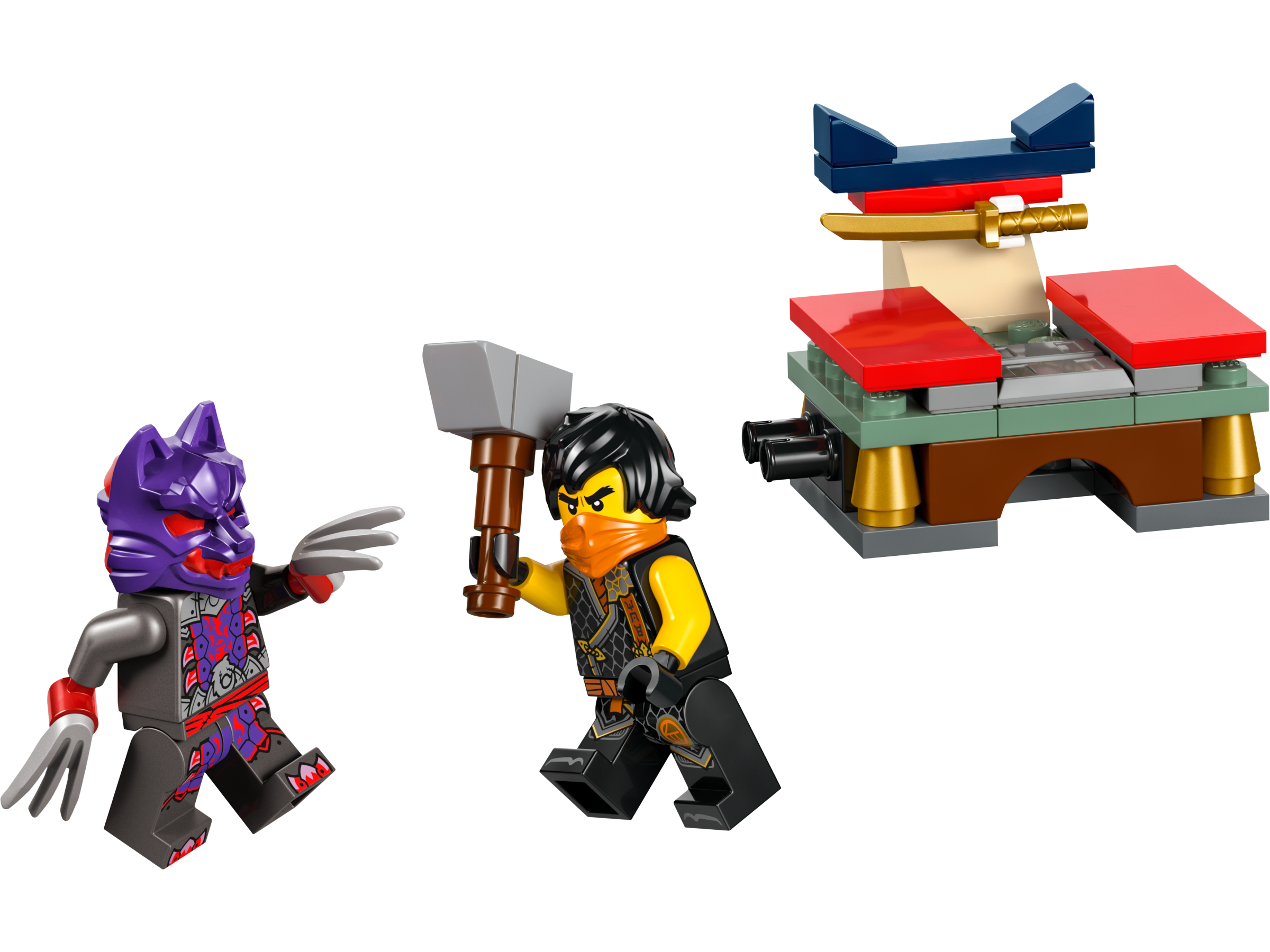 Zestaw z ninja umożliwia dzieciom odgrywanie bitwy między Cole’em z kataną a wojownikiem wilczej maski ze szponami, którzy walczą o złoty kostur.