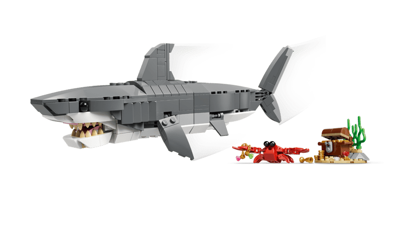 - Wymiary — ten 379-elementowy zestaw LEGO® zawiera rekina do zbudowania, który ma 8 cm wysokości, 26 cm długości i 11 cm szerokości