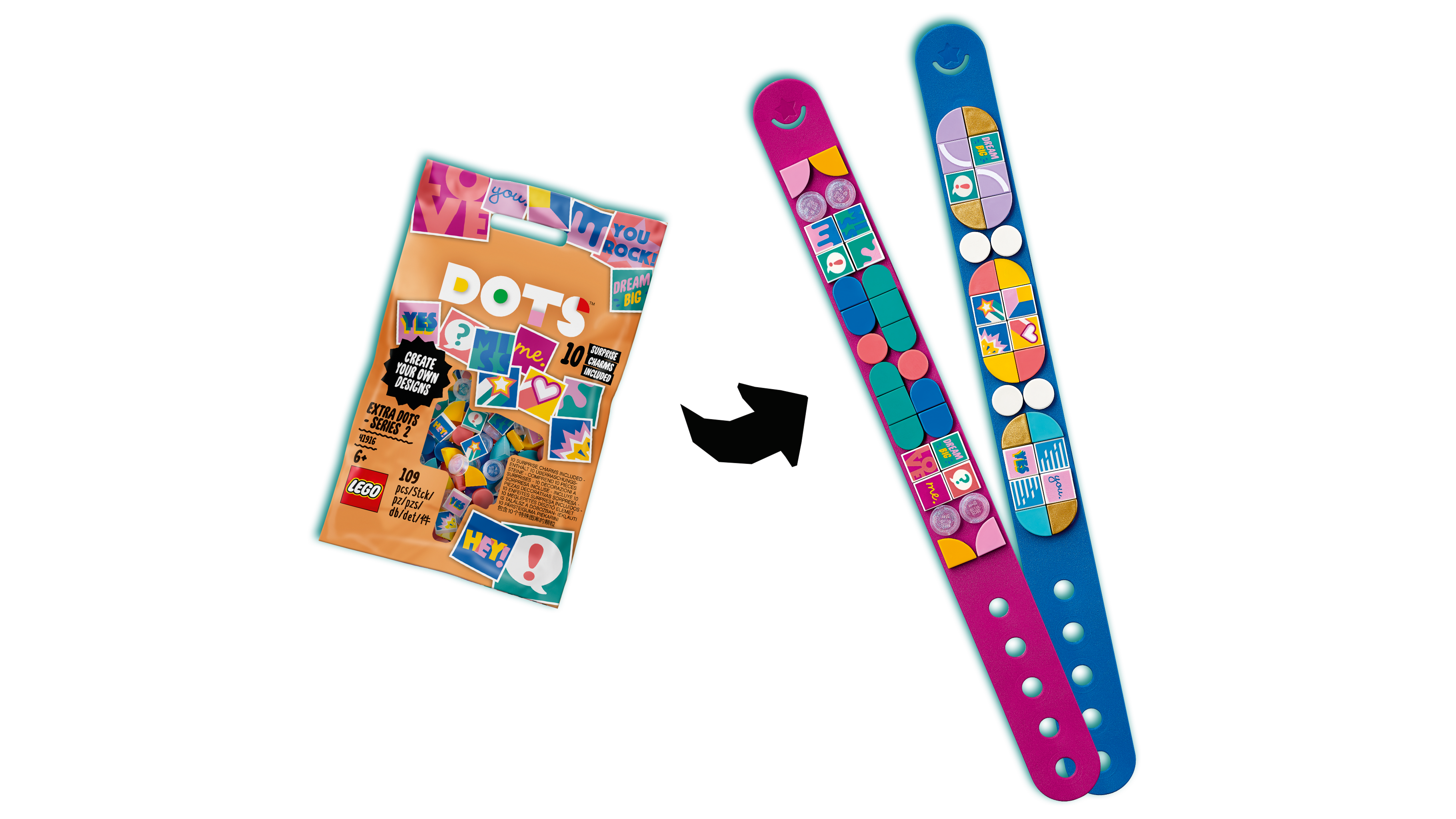 • Każdy miłośnik sztuki i budowania z radością doda zestaw Dodatki DOTS — seria 2 (41916) do swojej kolekcji. Nowe kolory i płytki z nadrukiem to doskonały upominek dla chłopców i dziewczynek w wieku od 6 lat. Mała, łatwa do zabrania ze sobą i urocza paczuszka kreatywnych płytek pozwoli młodym dekoratorom upiększyć ich dzieła i stworzyć jeszcze bardziej niezwykłe bransoletki lub dekoracje do domu.