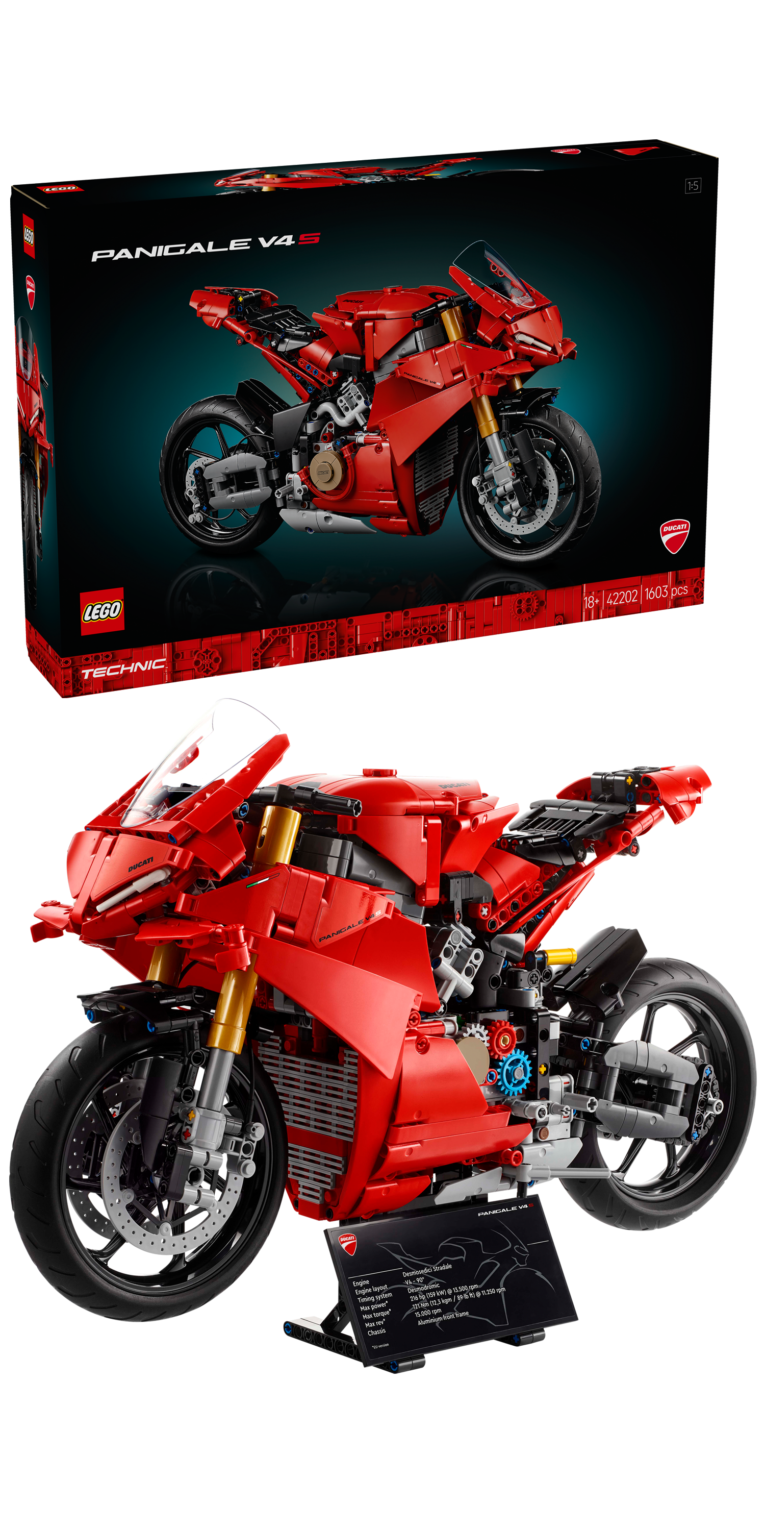 • LEGO® Technic Motocykl Ducati Panigale V4 S — model jest pełen imponujących detali i autentycznych elementów, takich jak przednie i tylne zawieszenie oraz układ kierowniczy