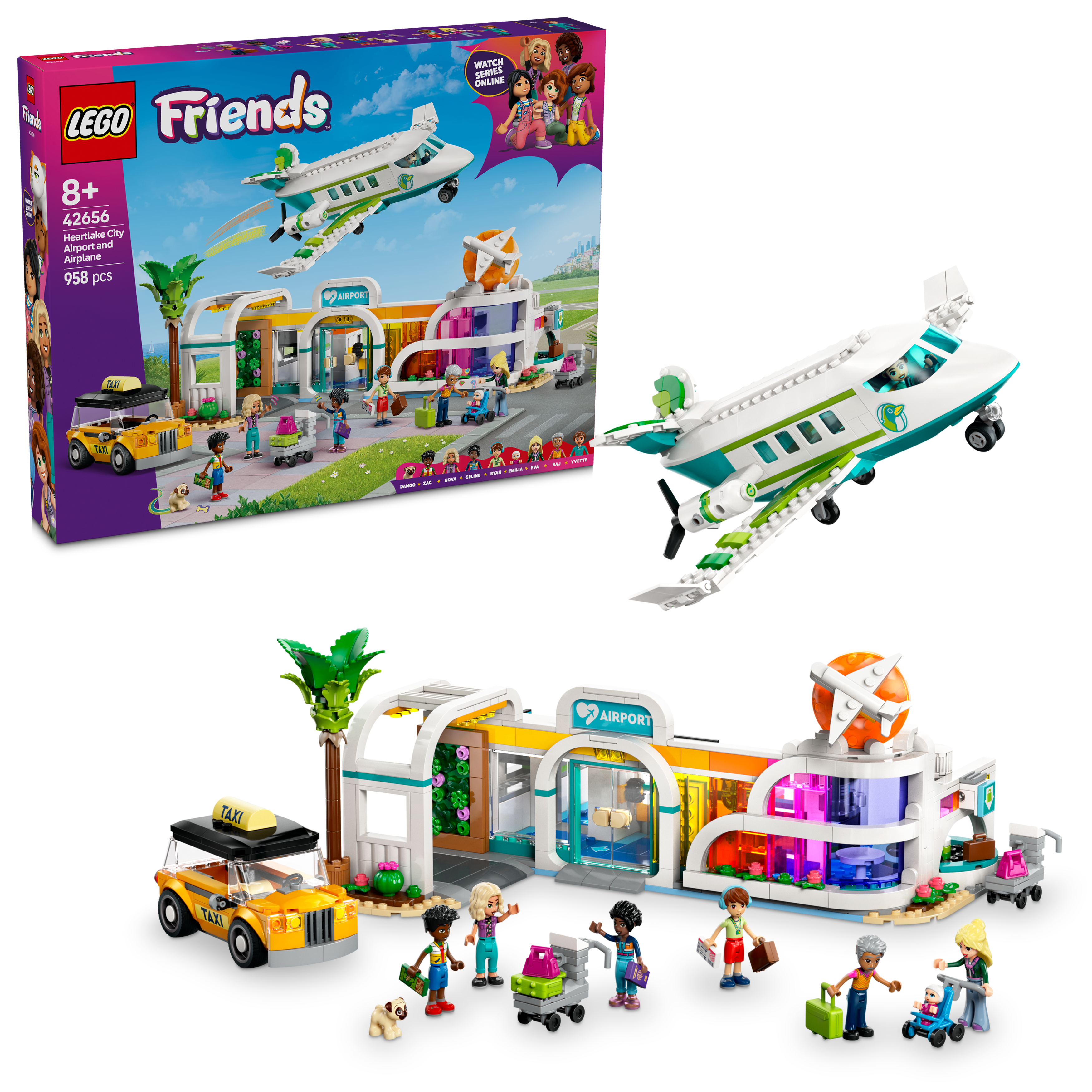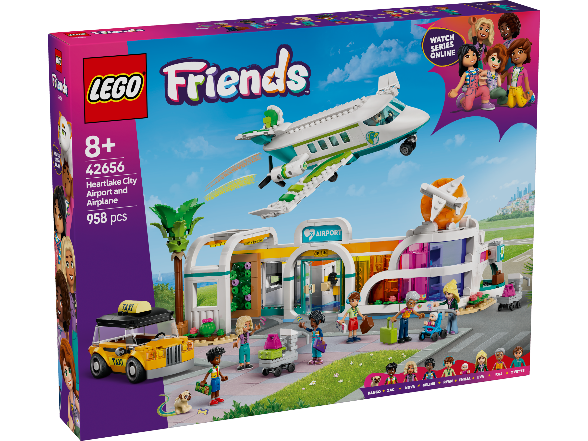 • Zawiera osiem postaci LEGO® Friends — różnorodna gama postaci obejmuje Zaca i Novę, a także siostrę Zaca, która przyleciała z Francji oraz figurkę pilotai niemowlę