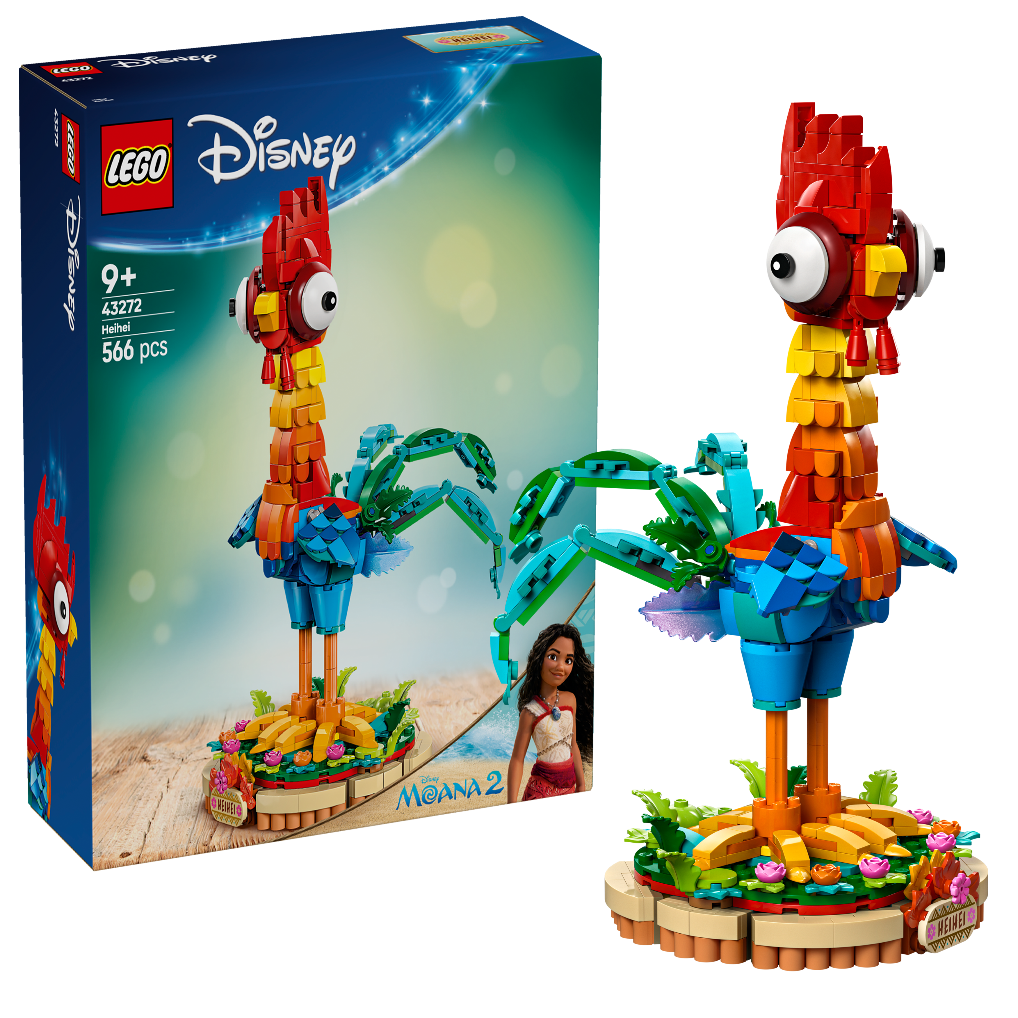 • Ozdobna zabawka do zbudowania —zestaw zawiera zbudowany z klocków, ruchomy model towarzysza Vaiany, kurczaka Heiheia, a także podstawkę z ozdobnymi kwiatami i tabliczką z napisem