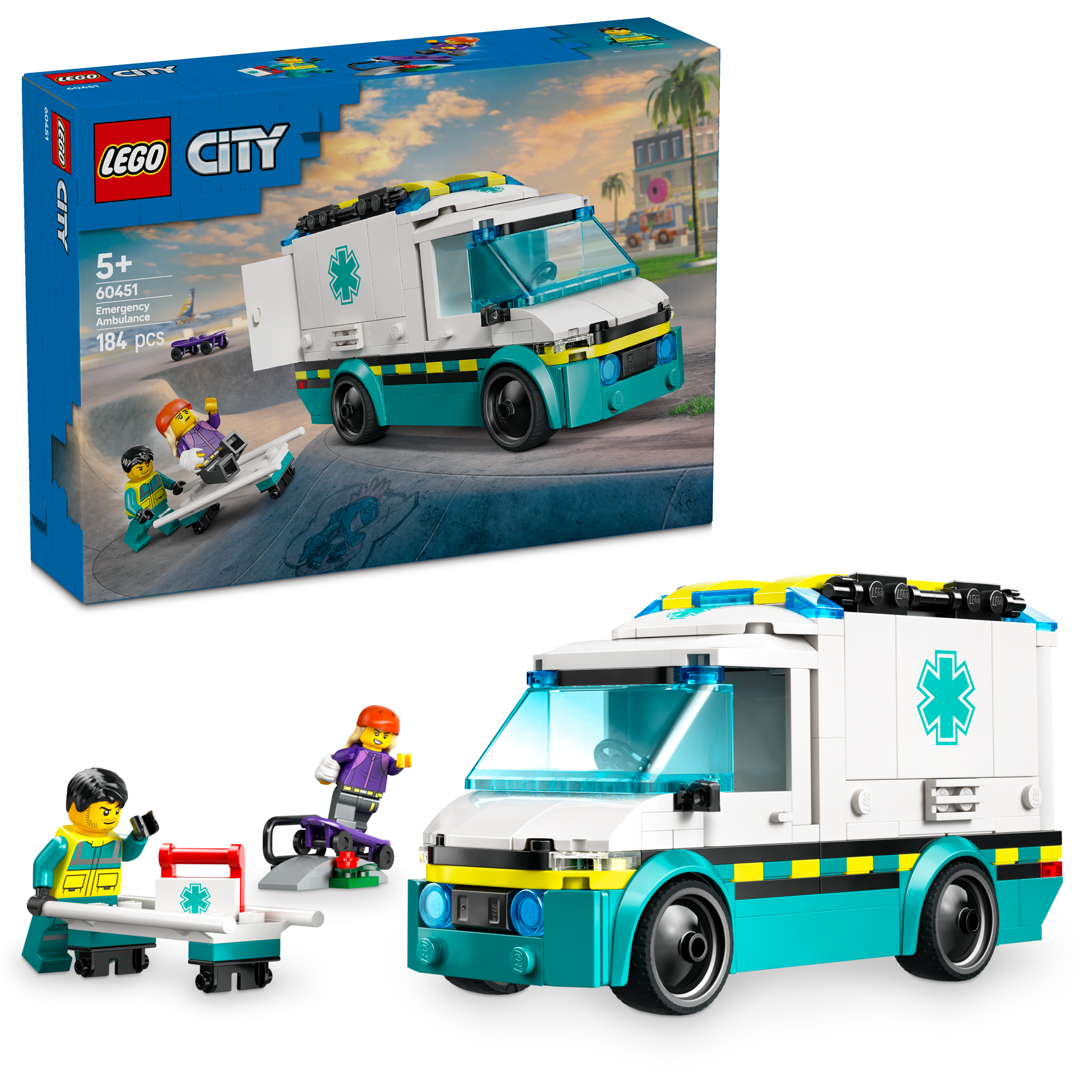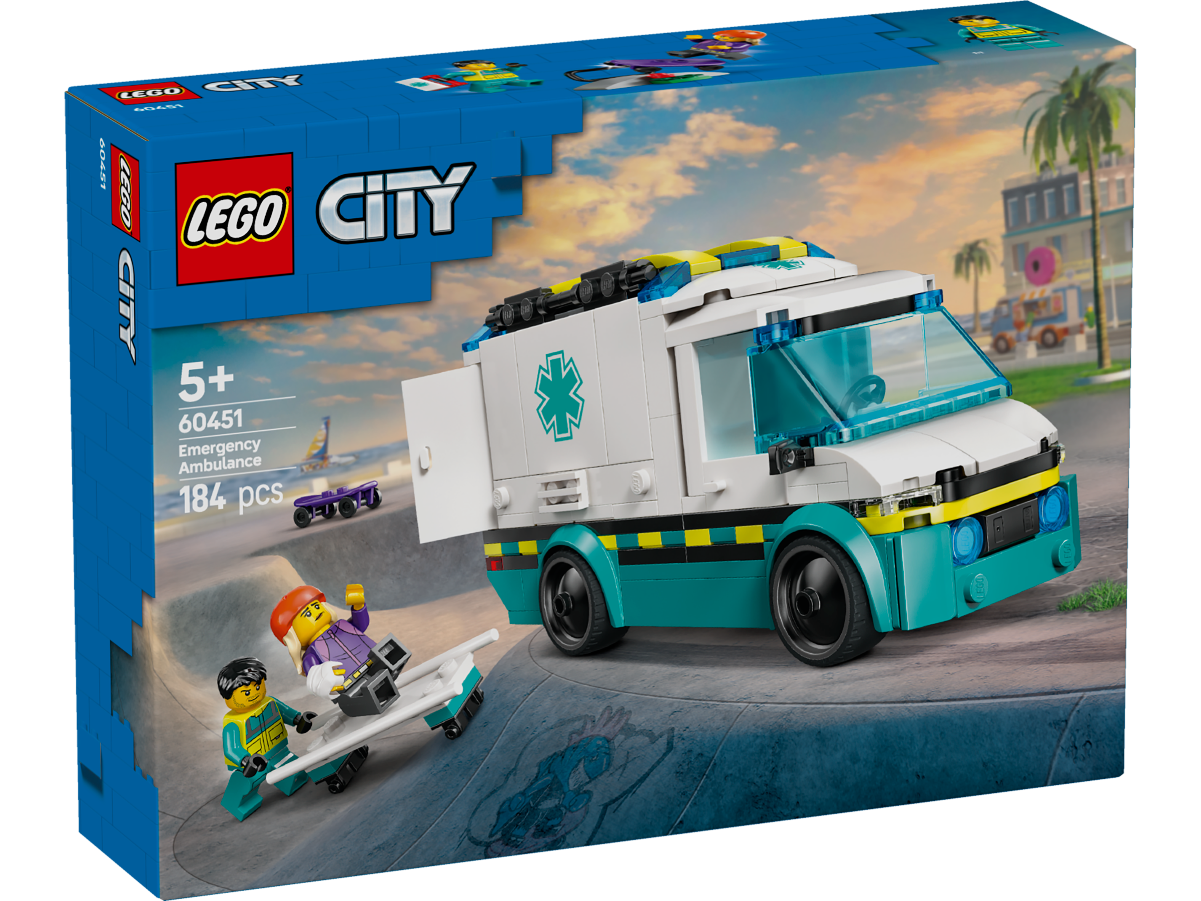 • Zawartość zestawu — zestaw zawiera wszystko, czegodzieci potrzebują do zbudowania karetki, a także rampę i minifigurki deskorolkarza i ratownika do odgrywania ról