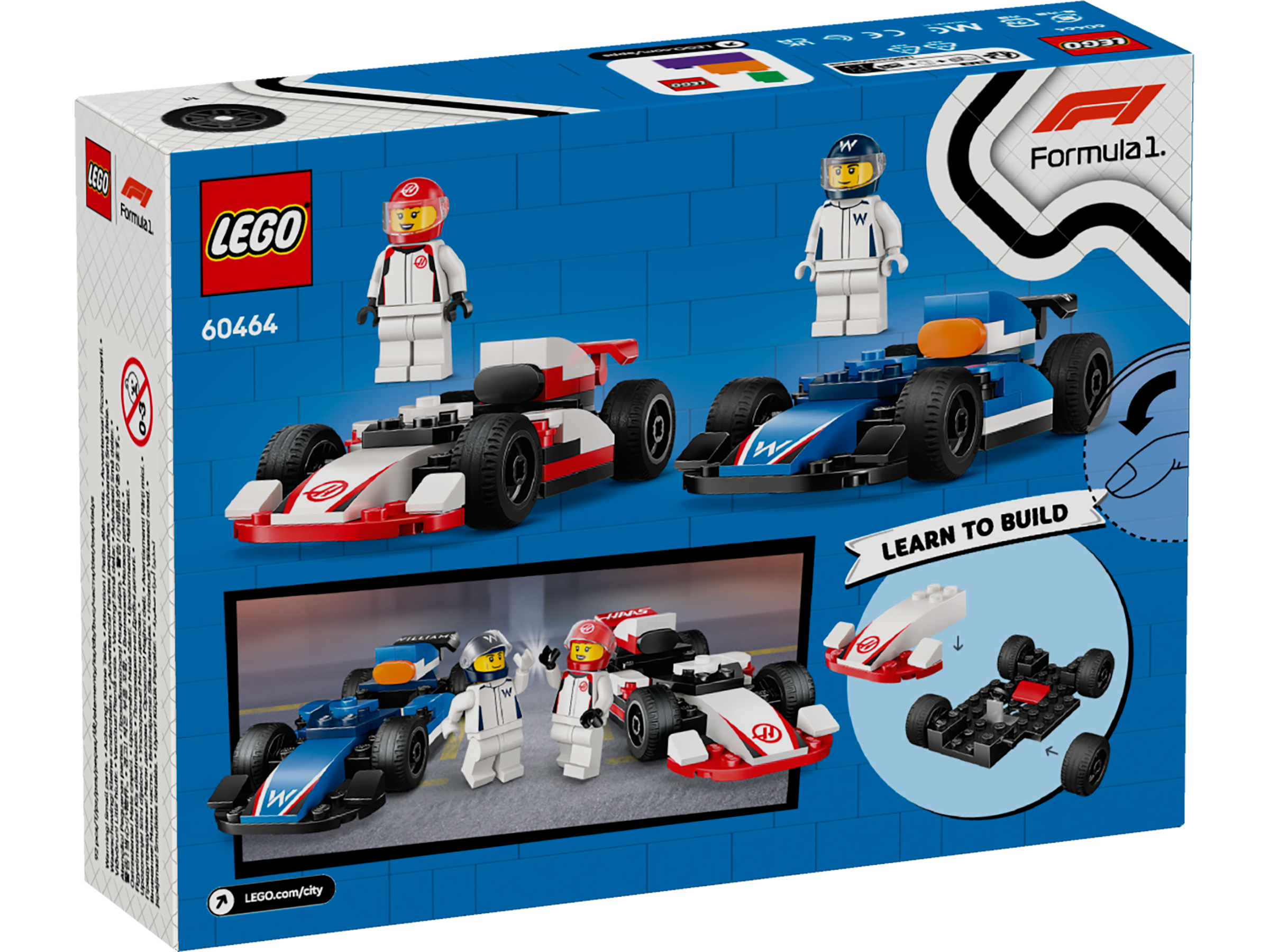 • Zawartość zestawu — zestaw zawiera wszystko, czego dzieci potrzebują do zbudowania dwóch bolidów Formuły 1® oraz minifigurki kierowców zespołów Williams Racing i Haas