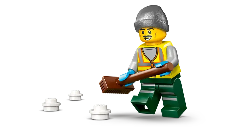 - Zupełnie jak prawdziwy — dzieci mogą przechylać, podnosić i opuszczać pług, pchaćzabawkową ciężarówkę, aby rozrzucać elementy LEGO® imitujące sól, przechylać kabinę, aby uzyskać dostęp do silnika, i posadzić minifigurkę kierowcy za kierownicą