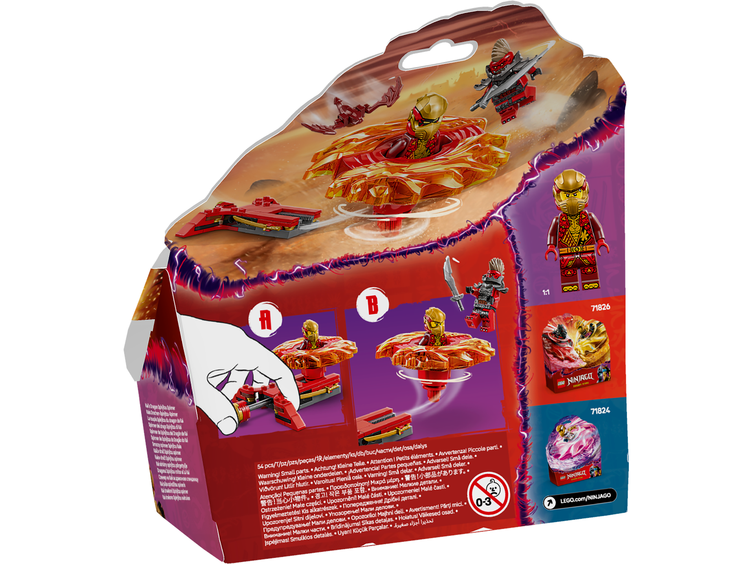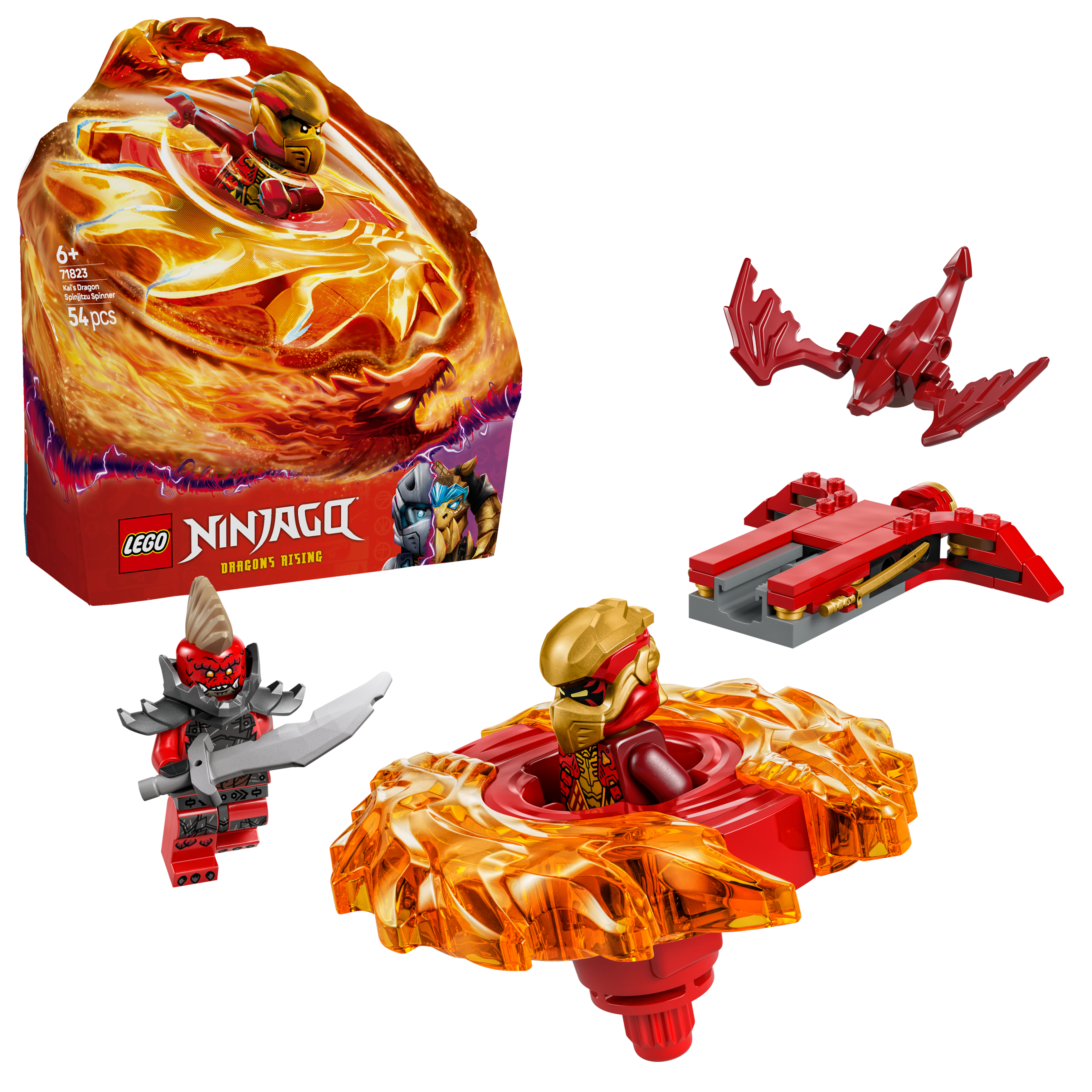 • Wymiary — ten 54-elementowy zestaw ze Smoczym spinnerem Spinjitzu Kaia ma 6 cm wysokości, 10 cm długości i 9 cm szerokości
