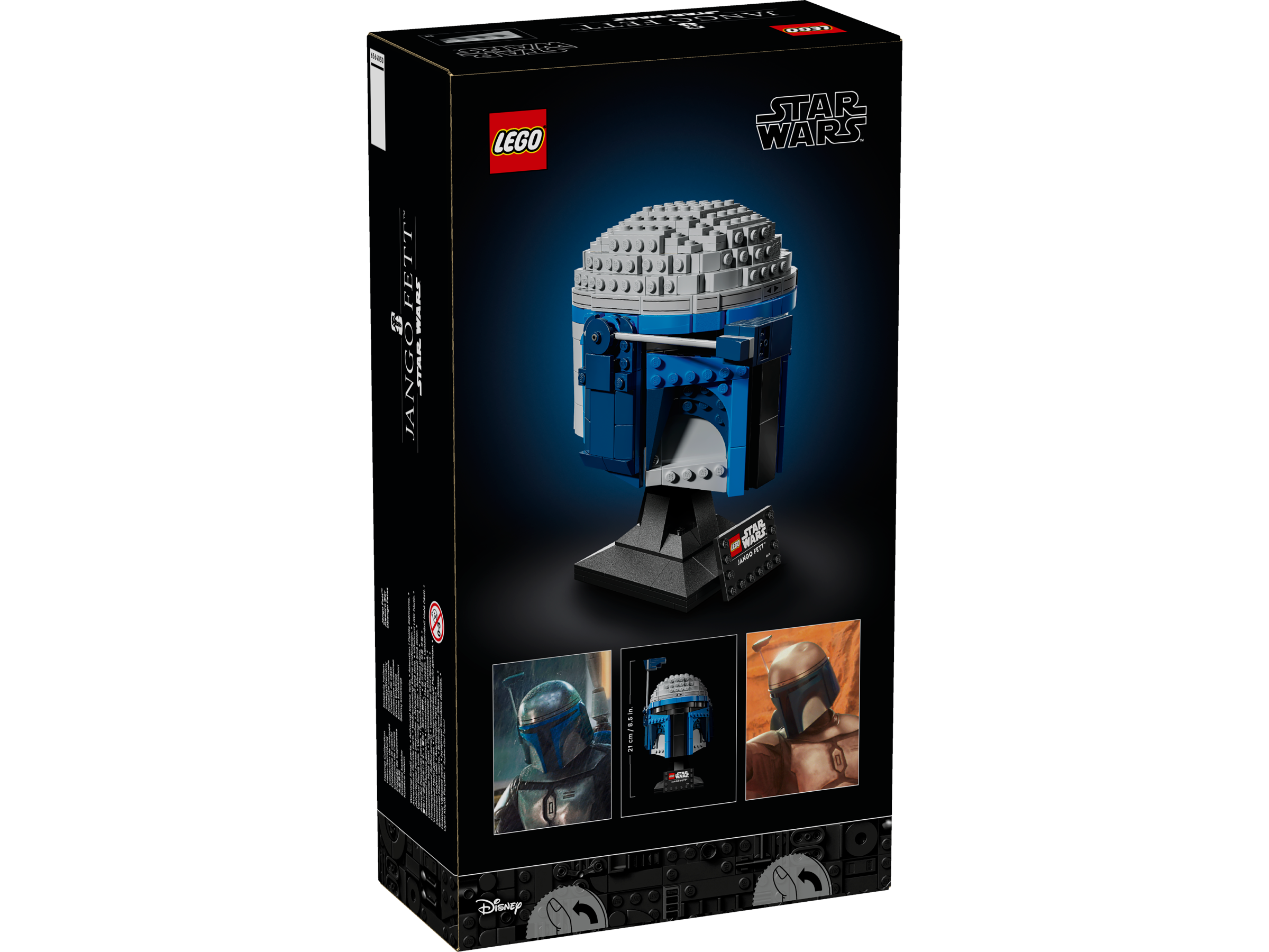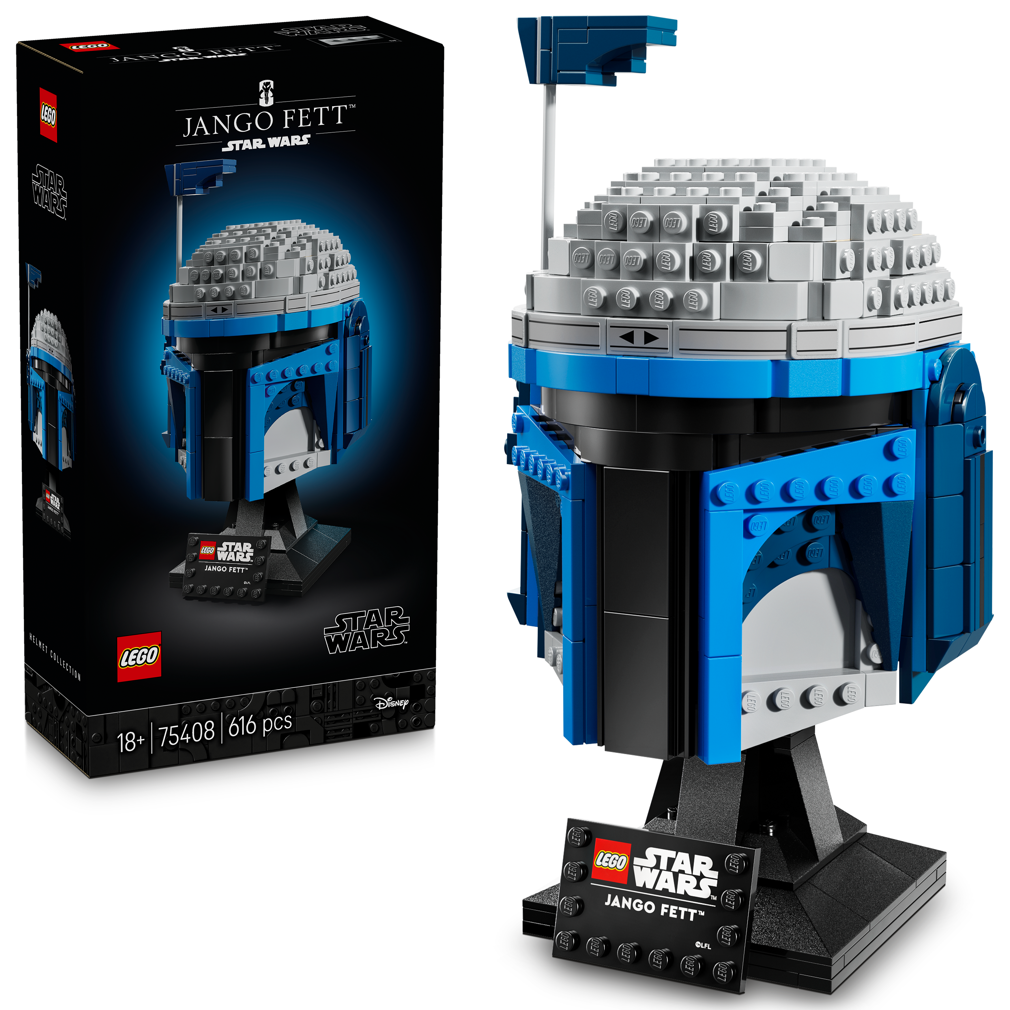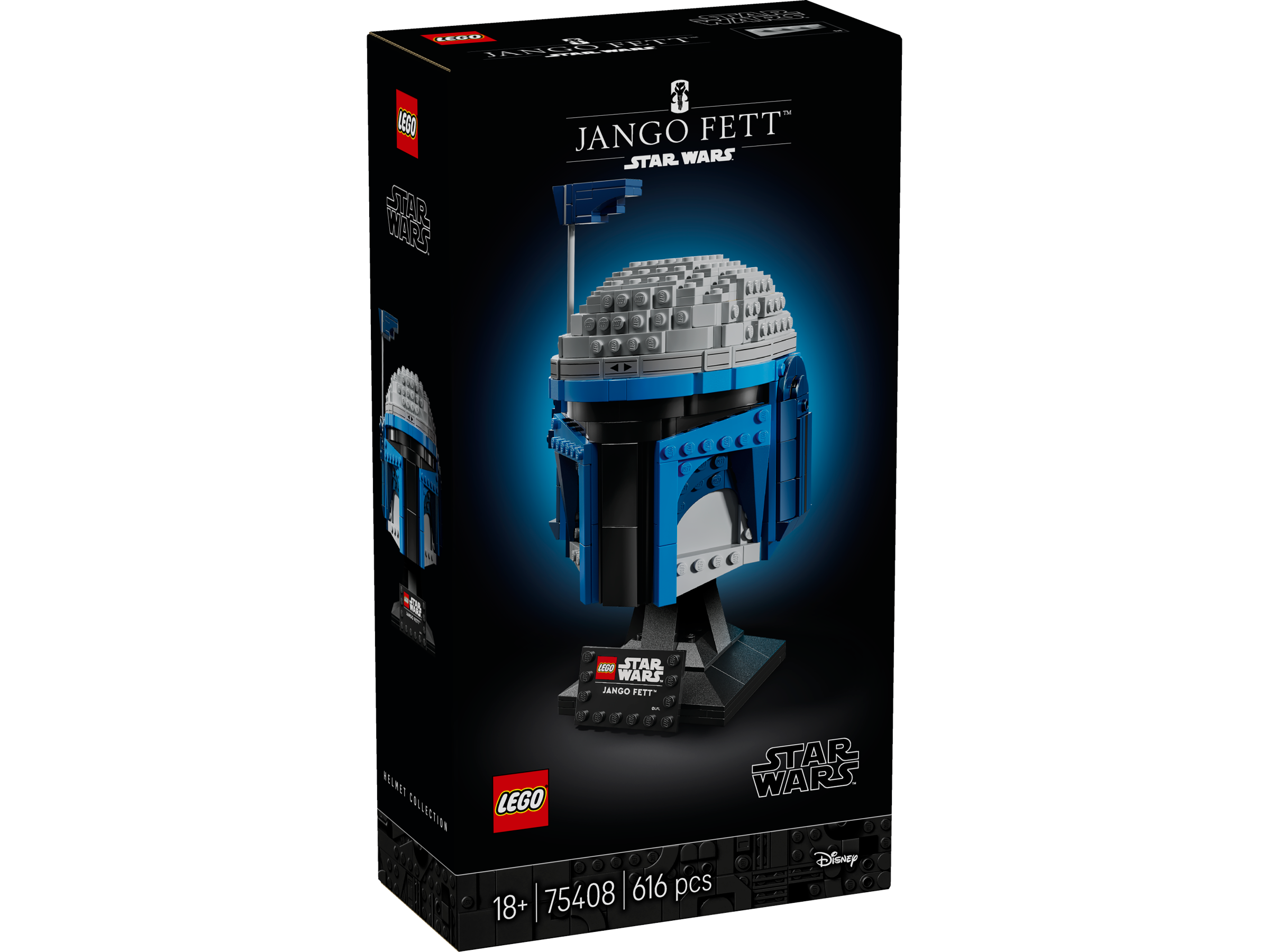 • Stwórz ozdobę z Gwiezdnych Wojen — odtwórz wyjątkowe cechy hełmu Jango Fetta, w tym regulowany dalmierz, i zaprezentuj go na podstawce do zbudowania wraz z tabliczką z napisem