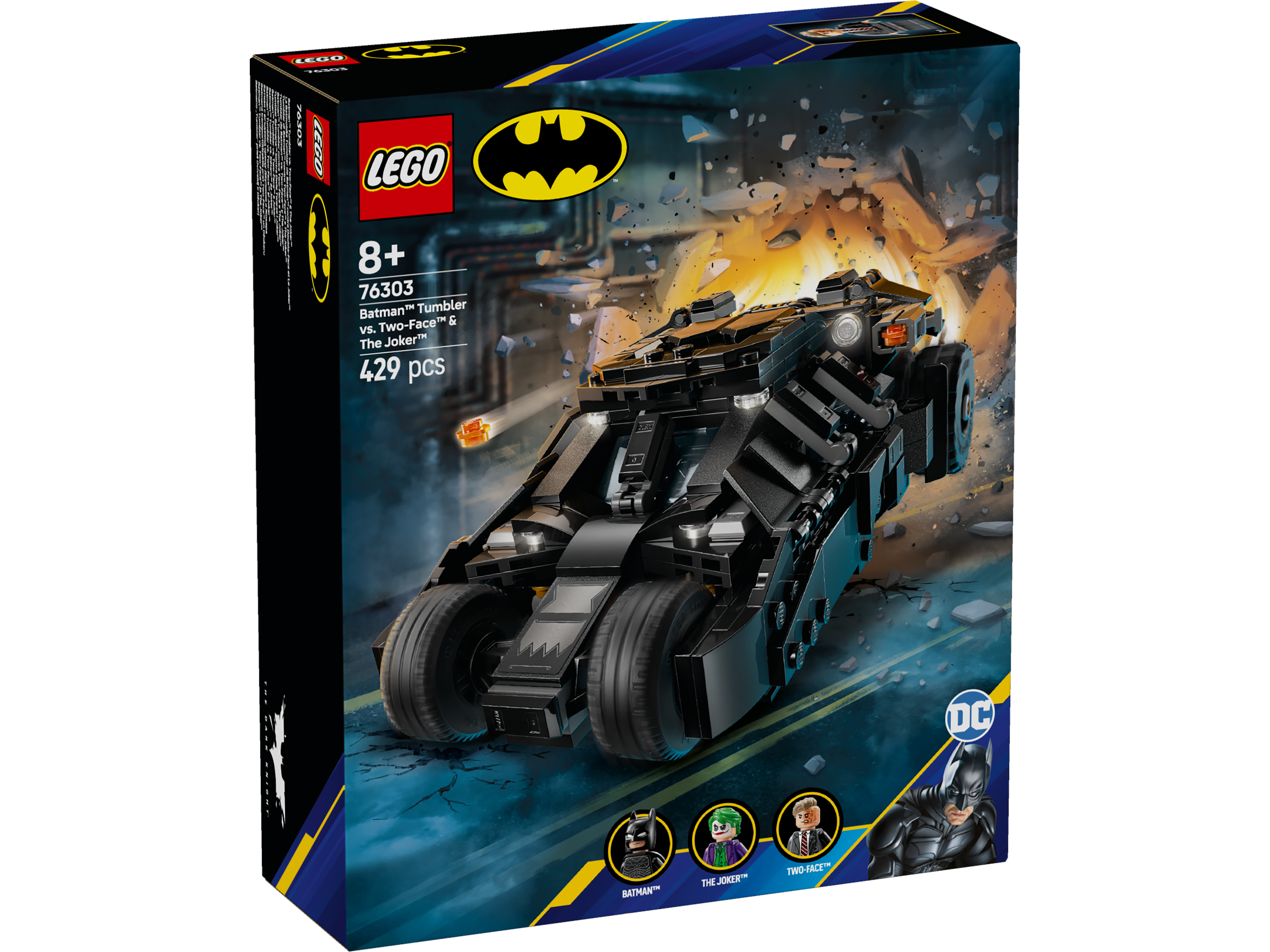 • Tumbler Batmana™ w wersji LEGO® — samochód ma element płomienia przymocowany do rury wydechowej, a także kokpit z panelem sterowania i miejscem na minifigurkę Batmana