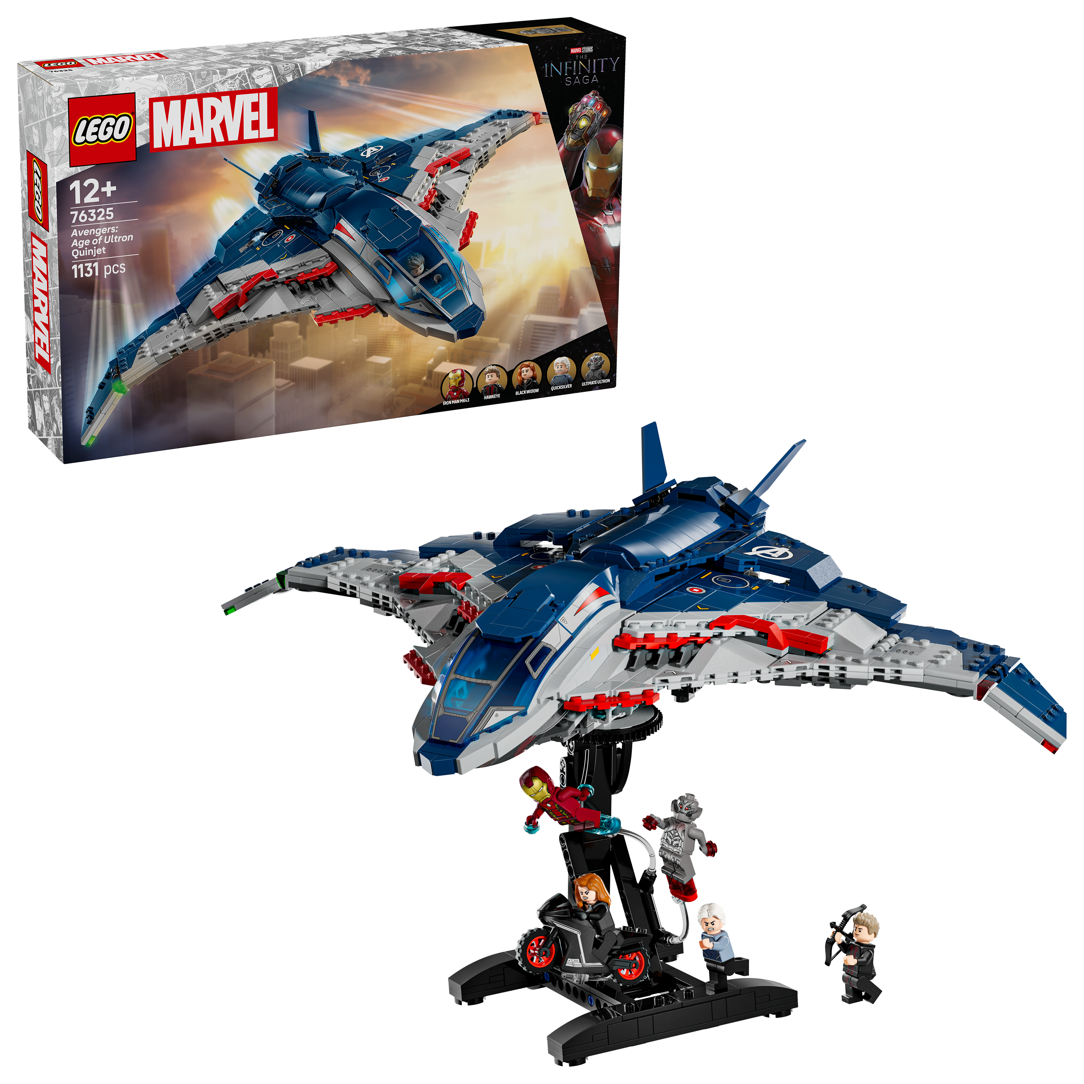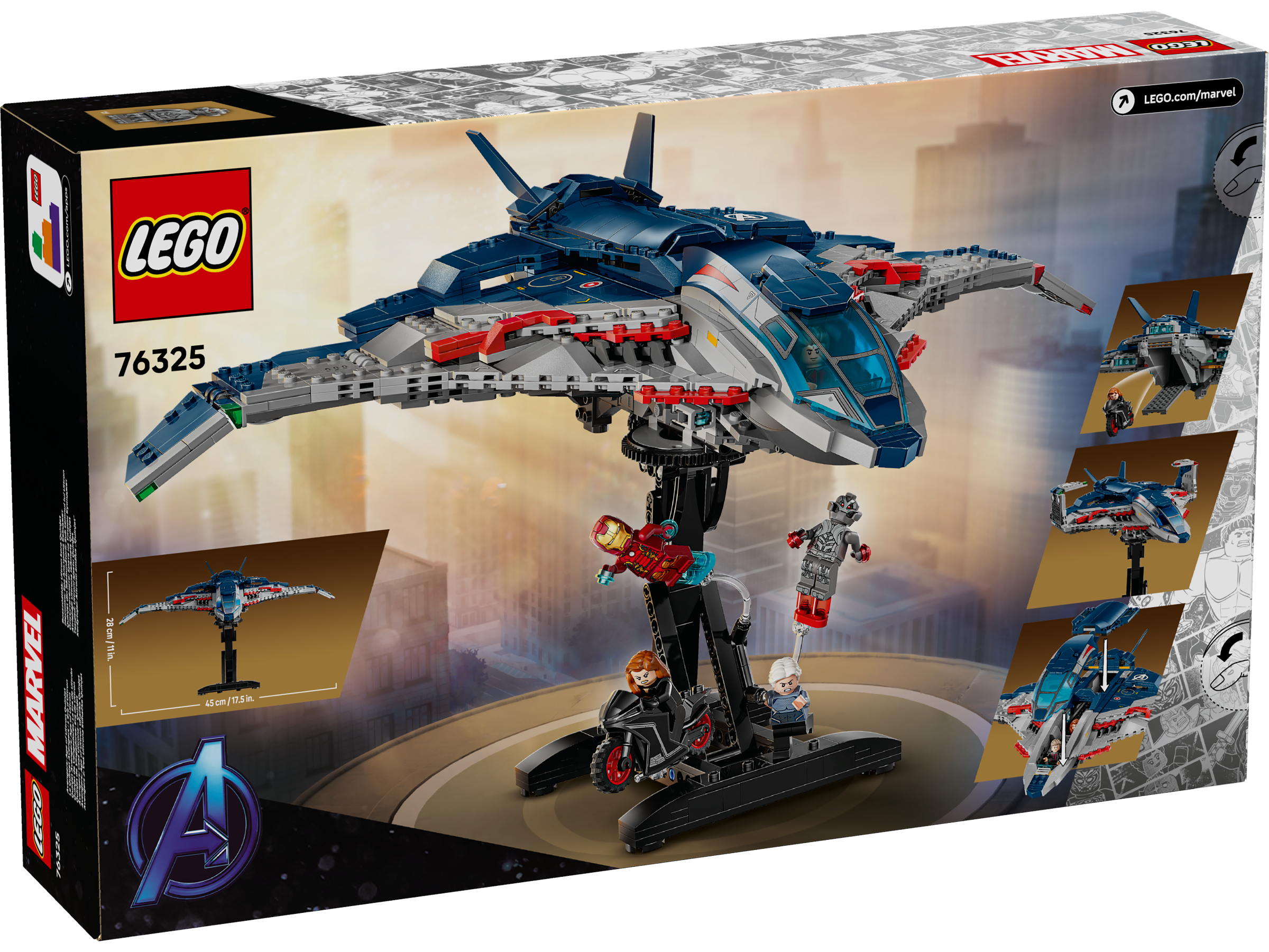 • Quinjet Avengersów — samolot ma otwierany kokpit, dwa miotacze klocków z przodu, schowek na broń i otwierane tylne drzwi, dzięki czemu dzieci mogą wjeżdżać i wyjeżdżać motocyklem