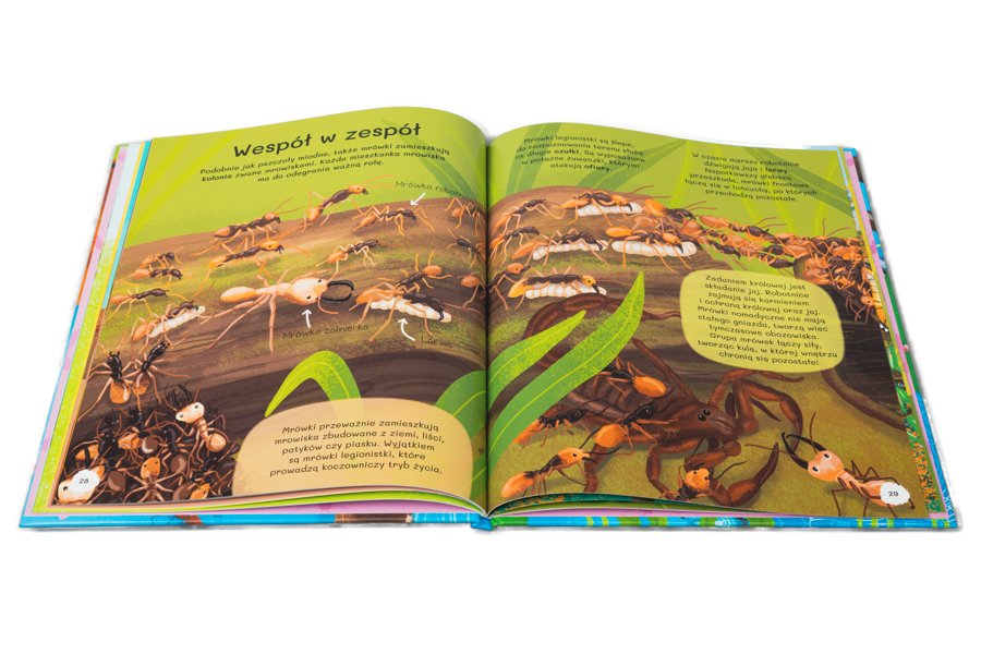 Czy jesteście ciekawi, ile kropek ma biedronka, dlaczego świetliki świętojańskie świecą i jak to się dzieje, że małe termity wznoszą aż tak wysokie budowle? Jeśli chcecie wiedzieć wszystko o owadach, a w dodatku jesteście fanami kolorowych ilustracji i poszukiwaczami przygód, koniecznie zajrzyjcie do tej 48-stronicowej książki, która zabierze was do fascynującego świata przyrody i odkryje przed wami niejedną owadzią tajemnicę.