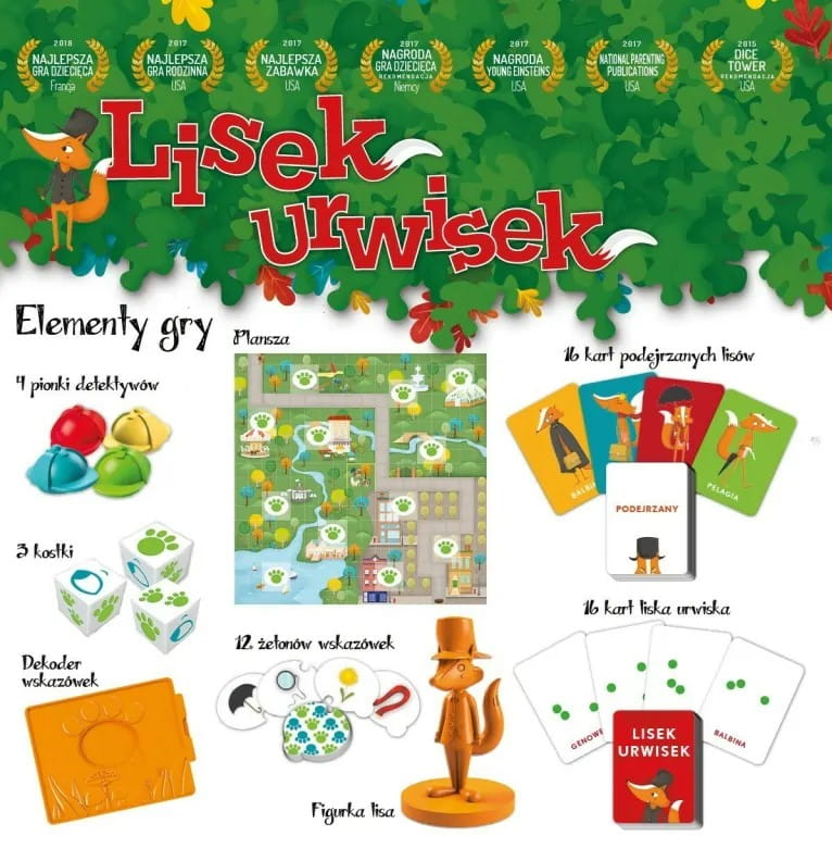 Gra kooperacyjna, w której dzieci nie rywalizują ze sobą. Zbierają wskazówki pozwalające rozwiązać zagadkę. Wśród lisów ukrył się lisek urwisek – gracze muszą współpracować, aby go odnaleźć.