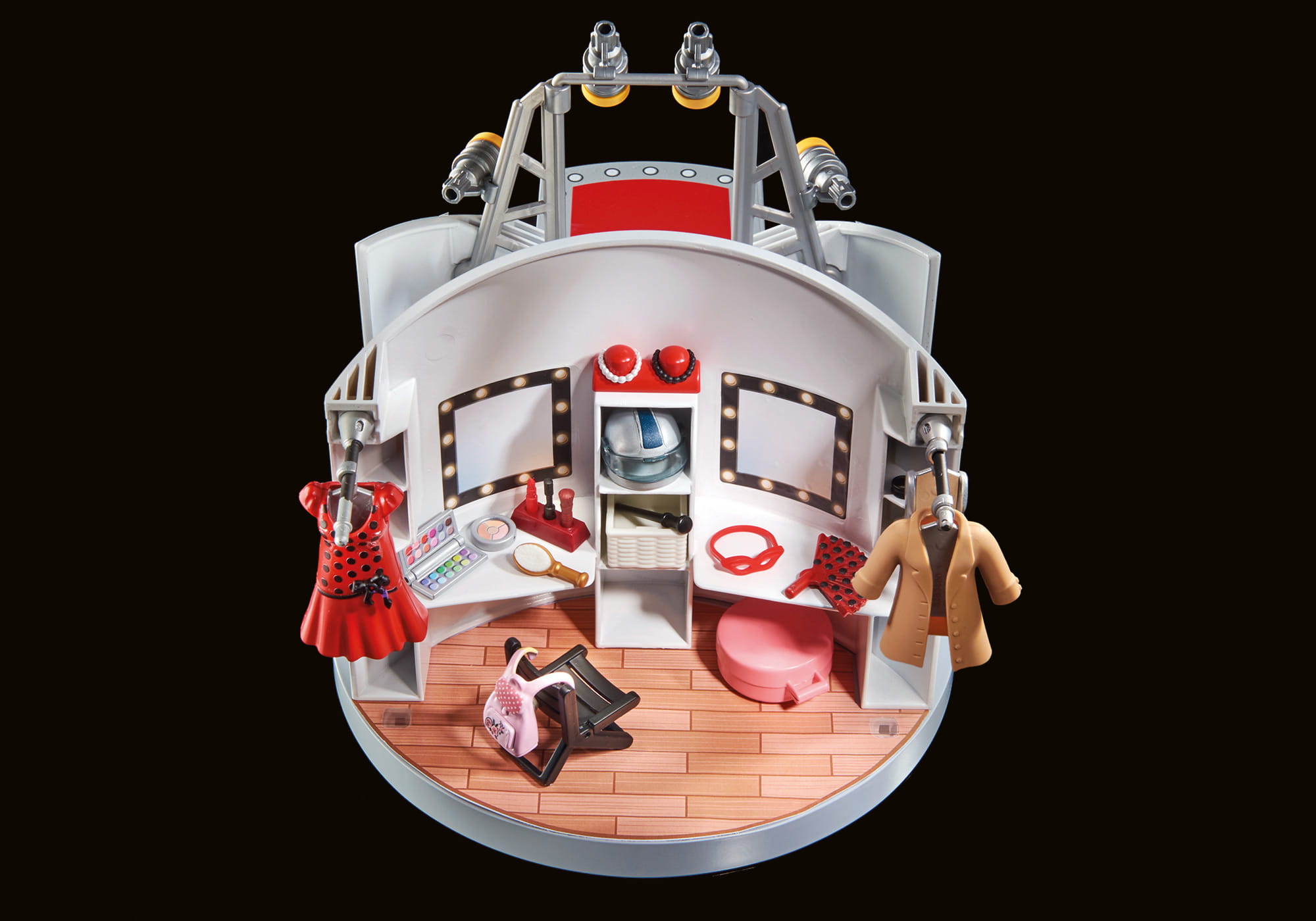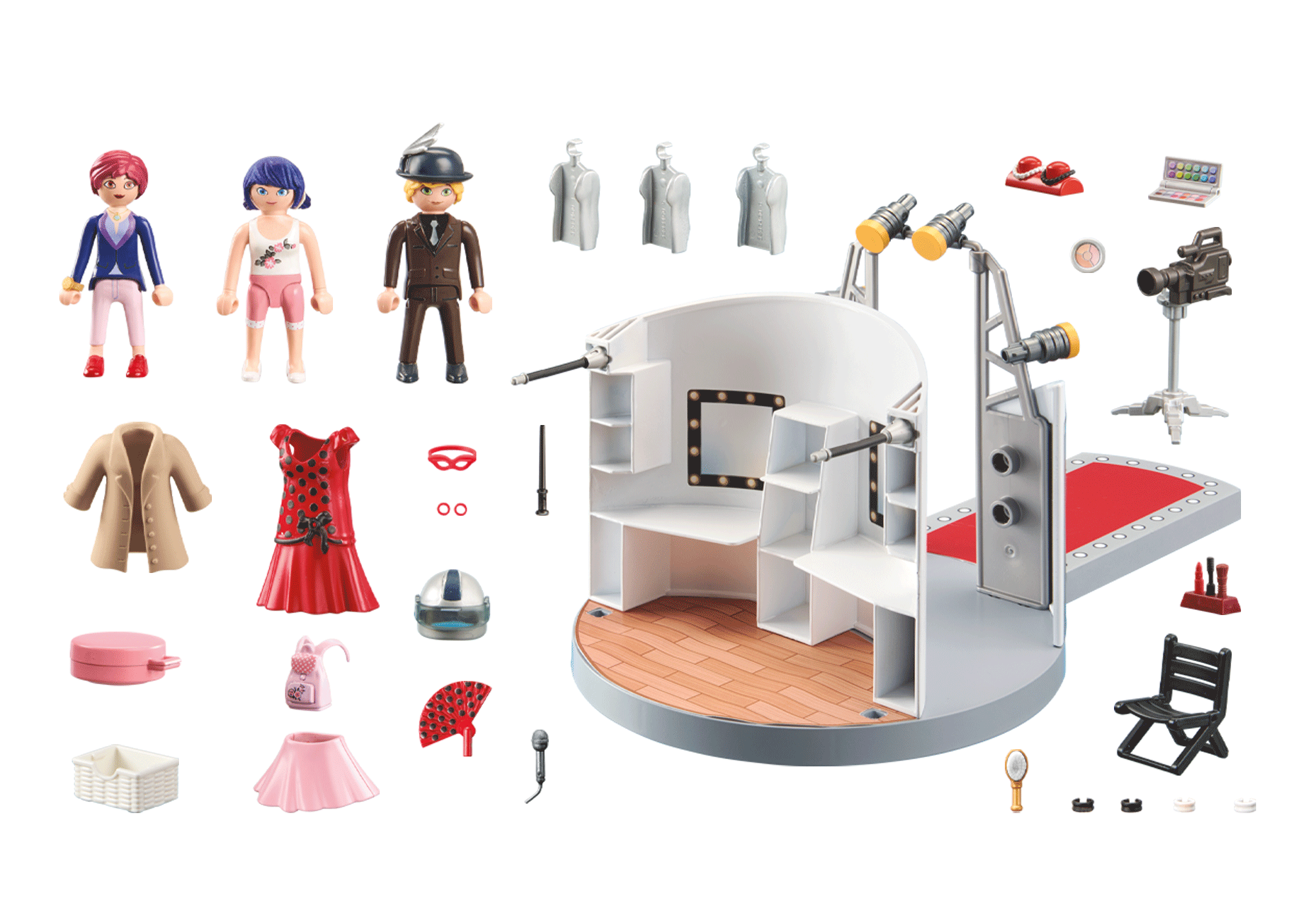 Akcesoria: 1 wybieg z miejscem do makijażu, 1 składane krzesło, 1 koszyk, 1 pudełko na kapelusze, 1 stojak z 2 naszyjnikami, 1 puder, 1 stojak z przyborami do makijażu, 1 wachlarz, 1 pudełko z cieniami do powiek, 1 pędzel, 1 płaszcz, 1 sukienka, 1 spódnica, 1 maska, 2 opaski do włosów, 1 laska, 1 mikrofon, 1 kamera, 3 wieszaki, 4 bransoletki, 1 hełm, 1 plecak, 1 kapelusz z piórkiem