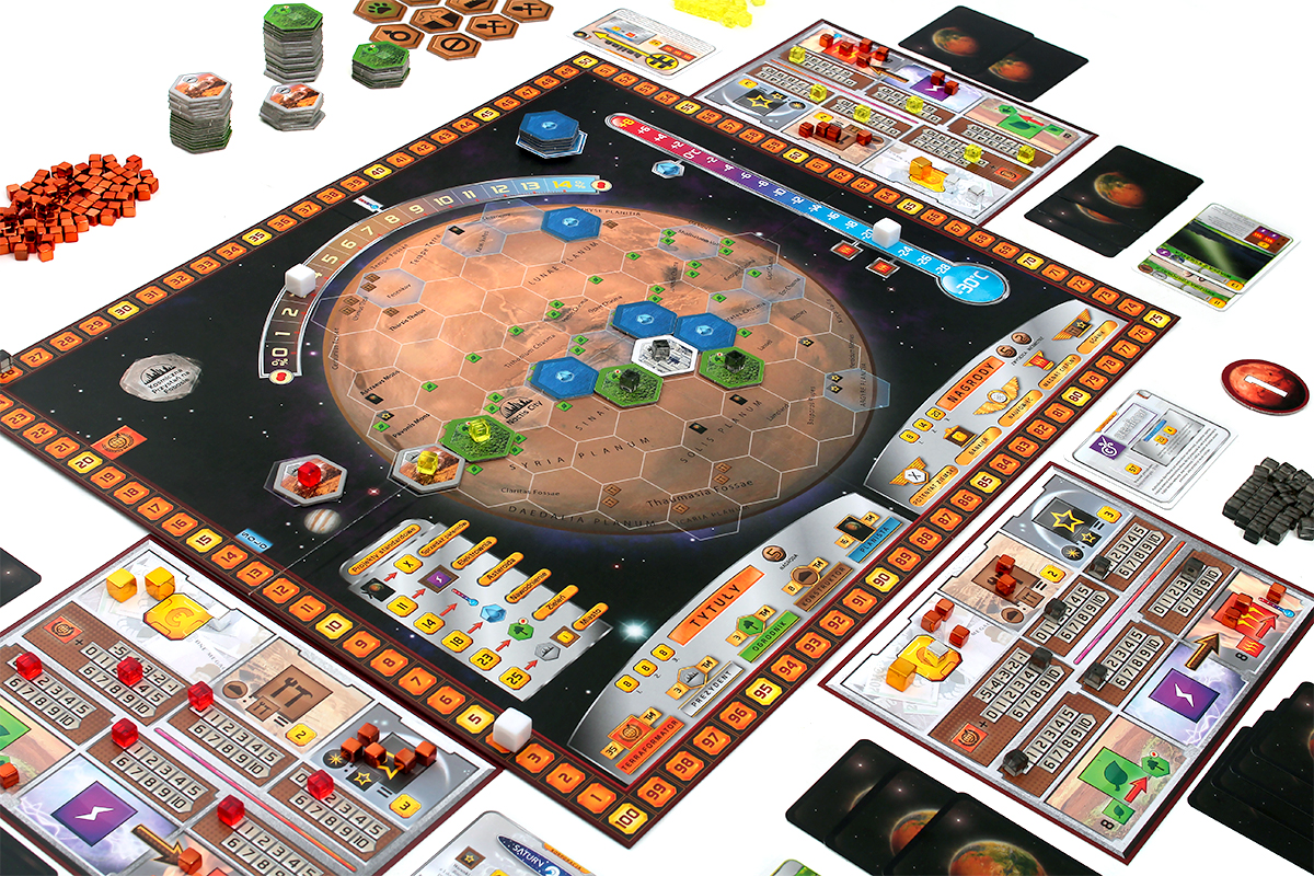 Na głównej planszy znajdują się tory: Temperatury, poziomu Tlenu, Współczynników Terraformacji i Pokoleń. W trakcie rozgrywki na mapie powierzchni planety gracze będą umieszczać kafelki Oceanu, Zieleni i Miasta. Na planszy znajduje się również lista podstawowych projektów dostępnych dla wszystkich graczy, a także tytuły i nagrody, o które gracze mogą rywalizować.