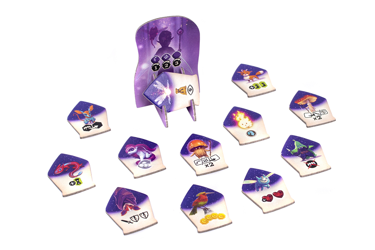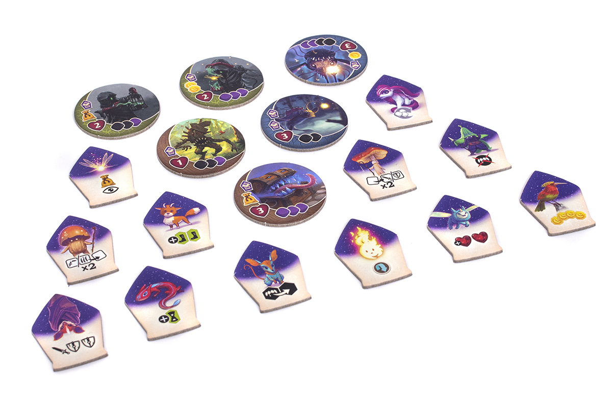 - 4 uniwersalne moduły, które dodatkowo urozmaicą rozgrywki, stawiając ciekawe wyzwania nawet przed doświadczonymi bohaterami Avelu. Wśród nich znajdziemy Księżycową Bestię (alternatywną wersję Monstrum z gry podstawowej), Okrutnych łowców (nowy rodzaj potworów polujących na magiczne duszki) oraz elfią parę królewską, Tytanię i Oberona (możemy wprowadzić ich do gry razem lub osobno, a każde z nich oferuje graczom potężne magiczne wsparcie).