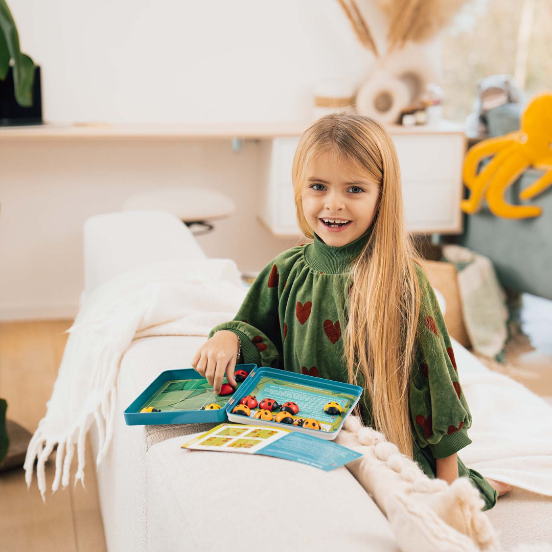 Podejmij wyzwanie SmartGames i spakuj biedronki do plecaka. Dzięki magnetycznemu opakowaniu nie musisz się martwić, że biedroneczki będą próbowały odlecieć.