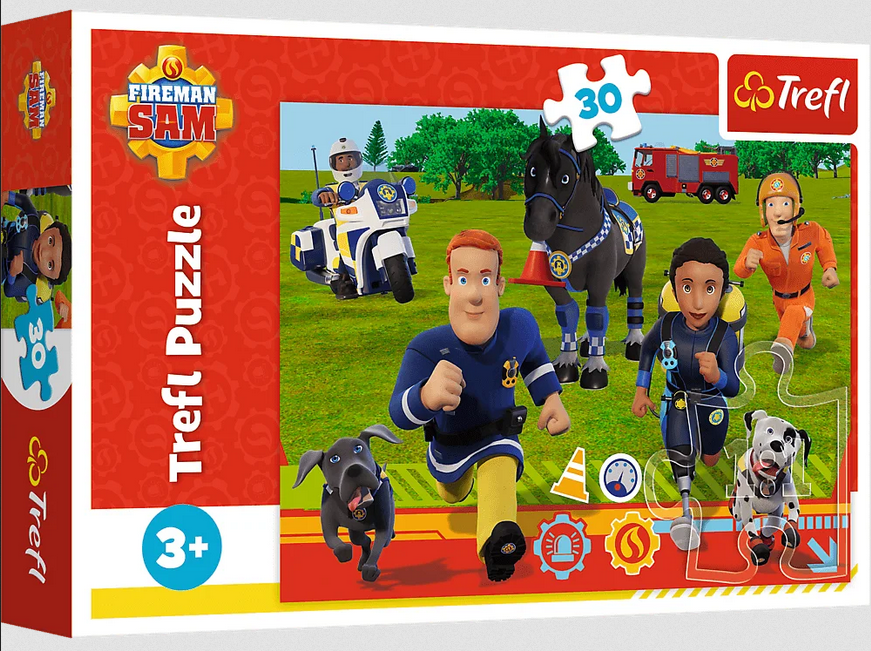 Gotowi do pomocy to puzzle składające się z 30 elementów, zaprojektowane specjalnie z myślą o małych fanach Strażaka Sama. Po ułożeniu układanki powstanie obrazek o wymiarach 270x200 mm.
