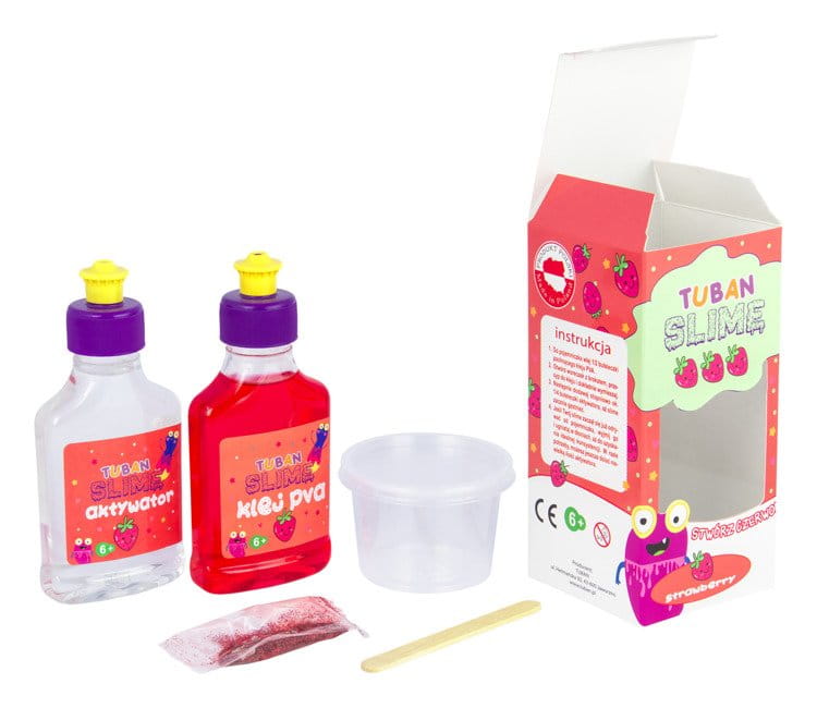 Zestaw do tworzenia czerwonego slime'a o zapachu truskawki.