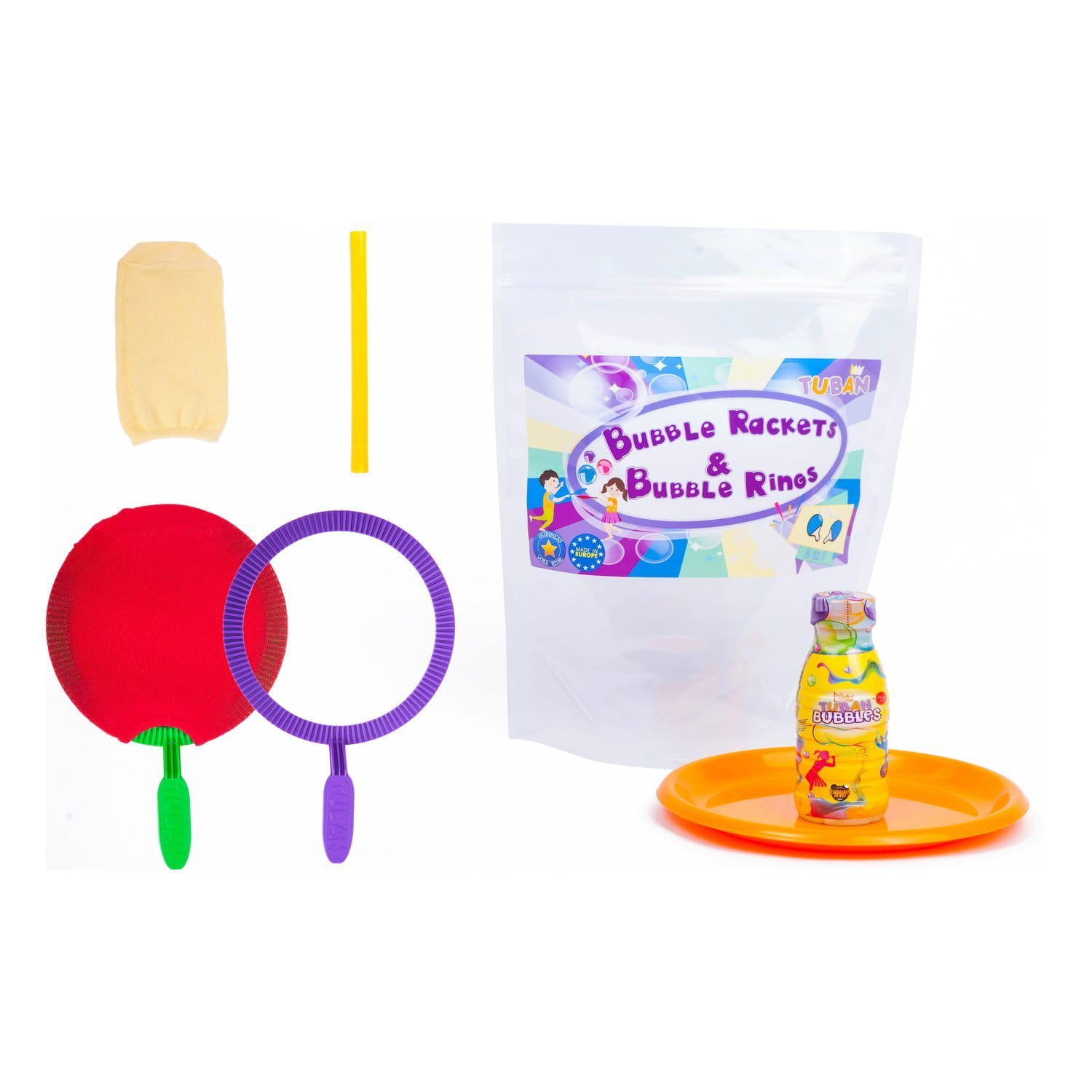 Bańkowy turniej, czemu nie? Stań w szranki z wszystkimi amatorami bańkowego szaleństwa! Pamiętaj, że i Ty możesz zostać Mistrzem baniek. Potrzebujesz do tego tylko TUBANowego zestawu. Rakietki pozwolą Ci opanować do perfekcji grę w bańko-ponga. A same obręcze będą doskonałym pomocnikiem w tworzeniu baniek! To co, gramy?